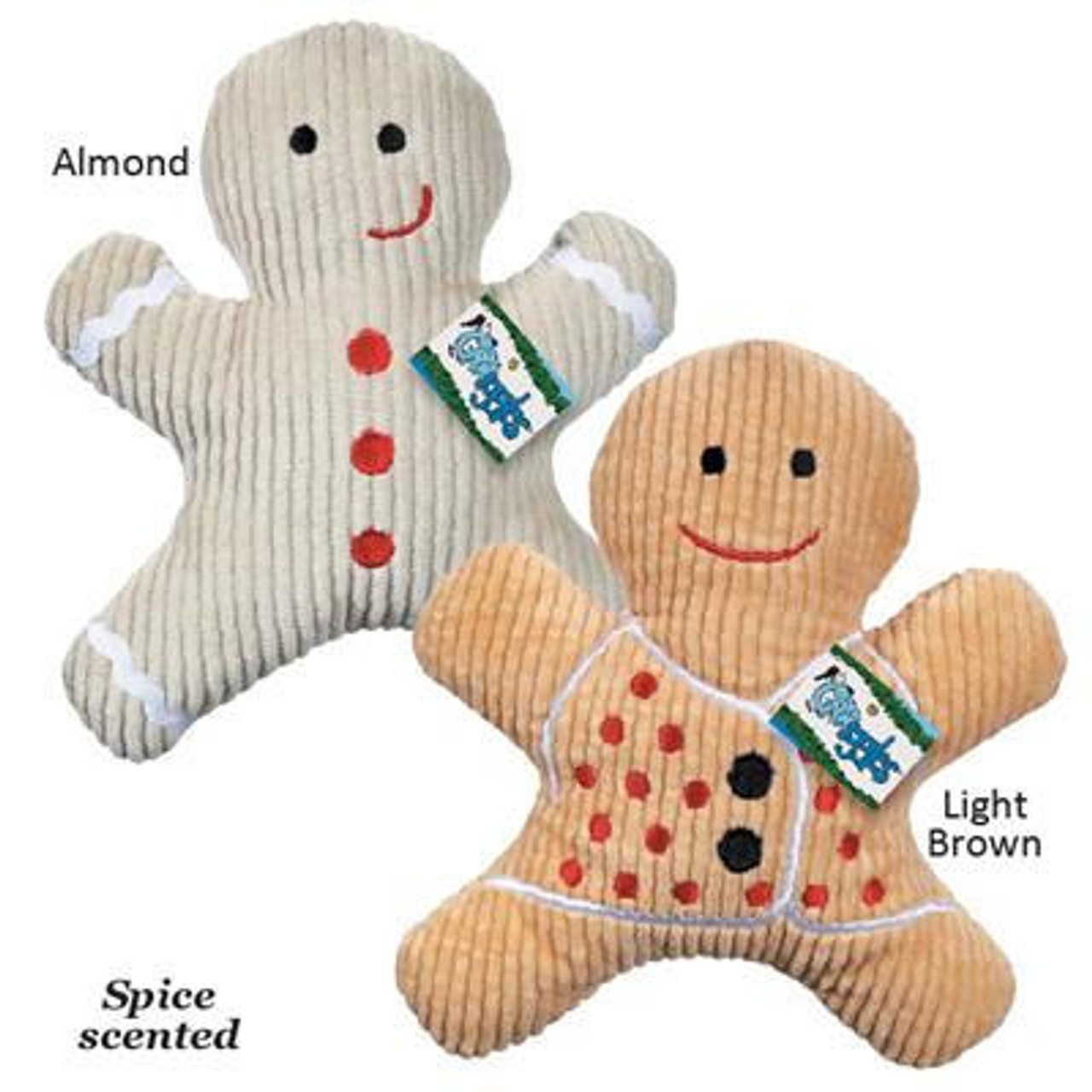 These sweet-looking Grriggles Scented Gingerbread Men toys look like real sweets! These cute cookie replicas feature rick rack trim and embroidered faces and buttons.